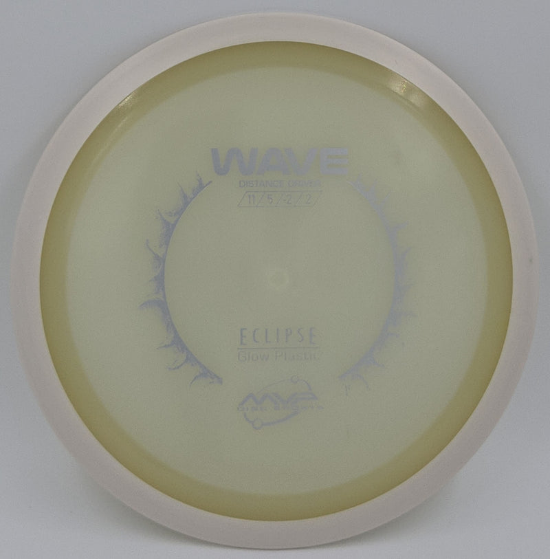 MVP's Eclipse Wave is a distance driver made in their lightest plastic. Designed for players with faster arm speeds. The Wave is capable of incredible turnover and hyzer-flip lines. For newer or slower arm speed players this disc can still be utilized for a variety of different shots. The Eclipse plastic is one of if not the brightest glow plastic on the market.